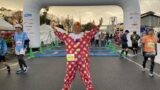 朝6時に起床して、車で選手用駐車場に向かいます。選手用駐車場に到着して車を停めて、準備をして、シャトルバスでスタート地点の網走刑務所に向かいます。会場に着くとすでの多くのランナーが集合してます。参加者が3000人くらいなので、さほど混んでいる感じではありません。今回は制限時間も6時間30分と長いので、ピエロの仮装をして、景色とエイドを楽しみながら走ります。お天気も良く、絶好のマラソン日和ですが、この時期としてはちょっと暑い感じです。スタート15分前の8時30分になり、ランナーは各自スタートブロックに整列してスタートを待ちます。私はいつもどおり最後尾からスタートするので、最後尾の辺りでスタートを待ちます。そして8時45分に号砲が鳴りスタート。最後尾の私は約11分後にスタートラインを通過して走り始めました。