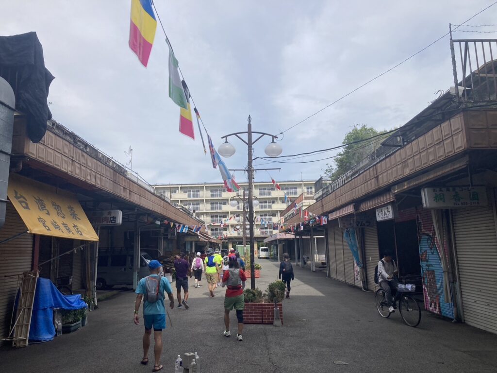 最初の目的地は赤羽駅からすぐの赤羽八幡神社です。神社を避けるように新幹線が通っているので、神社からは新幹線がよく見えます。赤羽八幡神社からしばらく走って、次の目的地・霧が丘団地に到着。都会の真ん中に残された昭和の団地で、見る限り誰も住んでいません。商店街もシャッター商店街になっていて、そのシャツターがアートになってます。しばらく走って、次の目的地・赤羽自然観察公園に到着。公園の中に北区指定文化財の旧松澤家住宅があって、無料で見学できます。しばらく走って、次の目的地・味の素ナショナルトレーニングセンターに到着。スポーツの日なのでイベントを開催してました。しばらく走って、次の目的地・中山道板橋宿に到着。縁切榎、板橋区の名前の由来になった板橋を見て、ここでお昼ご飯にします。私はお腹がすいていたので、日高屋でダブル餃子定食を食べました。