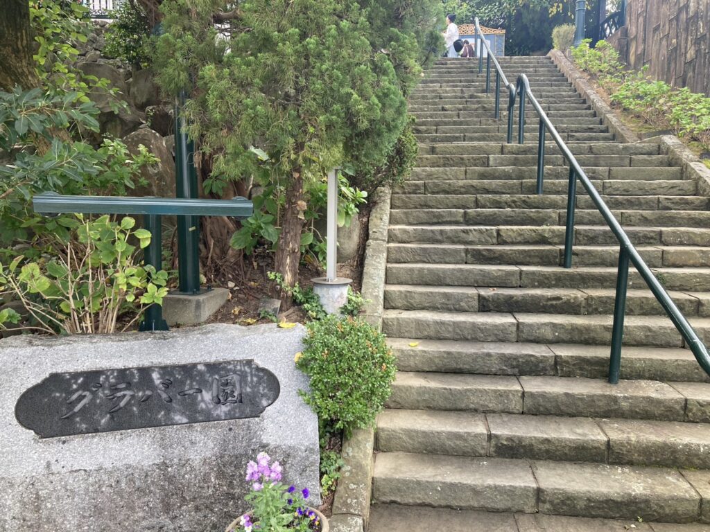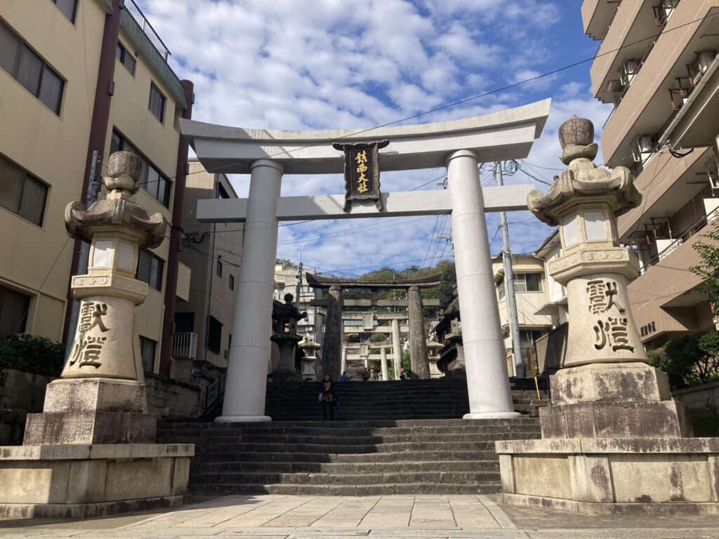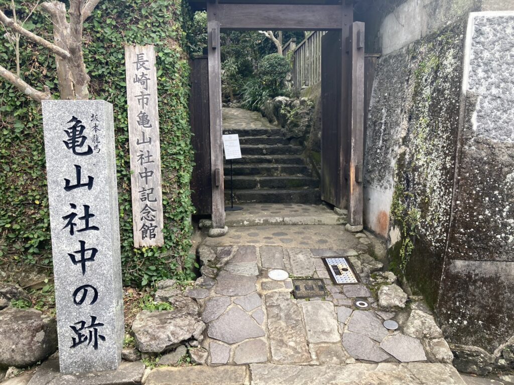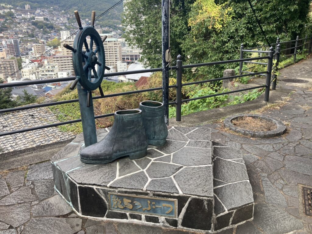 腹ごしらえを終えて、坂本龍馬が結成した「亀山社中」を目指します。途中「興福寺」に立ち寄り、急な階段を上って行くと「亀山社中」に到着。入口のところにある「龍馬のブーツ」からは長崎の町が一望できます。さらに階段を上がっていくと「亀山社中資料展示場」があります。ここは地元のボランティアが運営していて無料で見学できるので、ちょっと見学をしました。上がってきた階段を下っていくと「伊良林稲荷神社」があります。ここからは長崎駅方向に向かいます。途中「諏訪神社」を通って、長崎駅に戻ってきました。