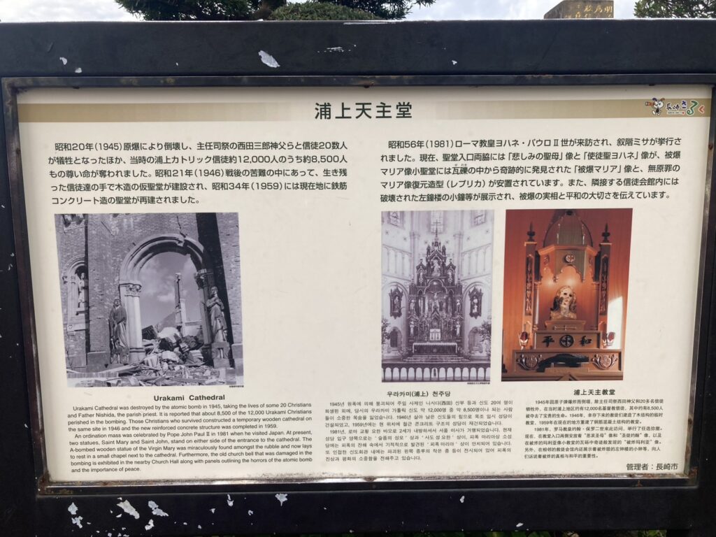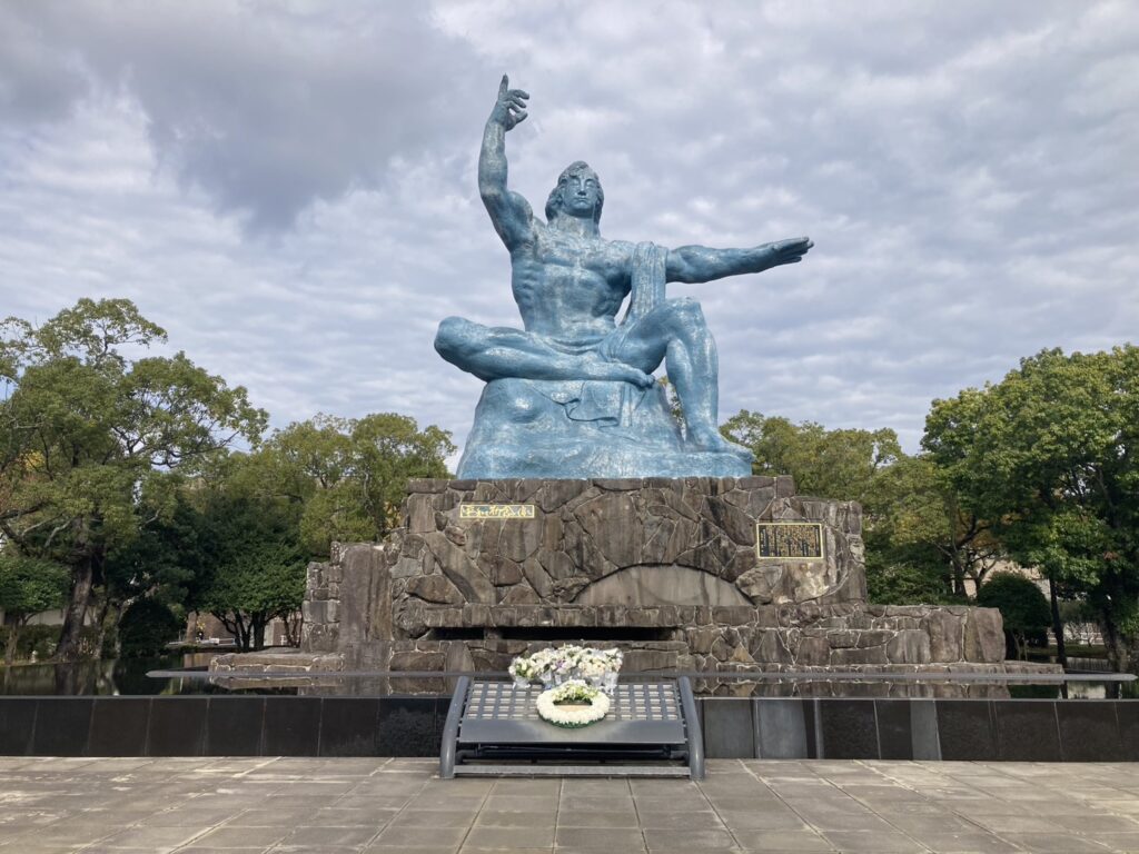 次は長崎駅から北のエリアを目指し、路面電車に沿って進みます。約3kmくらい走って「浦上天主堂」に到着。祝日でなのか、教会の中では牧師さんがお話をしてました。「浦上天主堂」から「平和公園」はすぐです。平和公園に入り「平和の泉」「平和祈念像」「原爆落下中心地」「被災当時の地層」と見学をしました。見学後、来た道を走って長崎駅に戻って行きます。途中「長崎スタジアムシティ」を通って、朝スタートした長崎駅に戻ってきてゴール。約18km、4時間半の楽しいマラニックでした。ゴール後は車に戻って、長崎市内唯一の銭湯に行って汗を流しました。