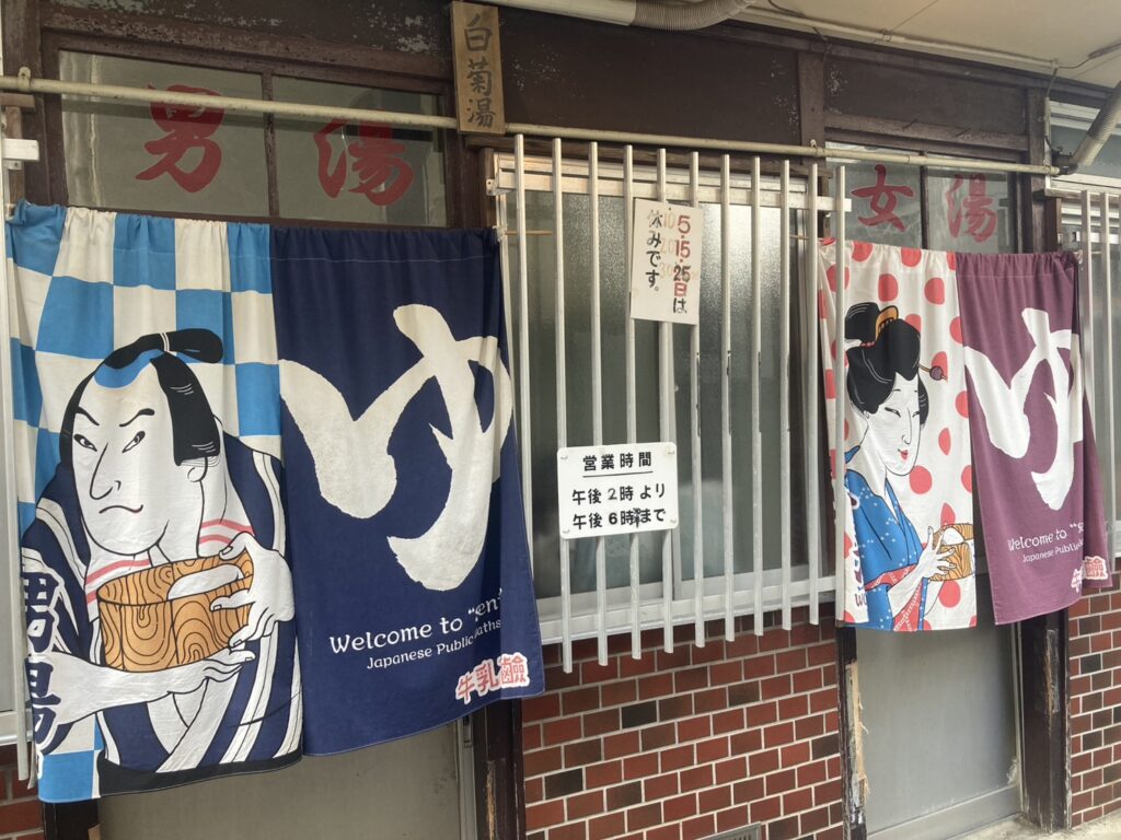 (遠くに稲佐山)               (昔ながらの銭湯)