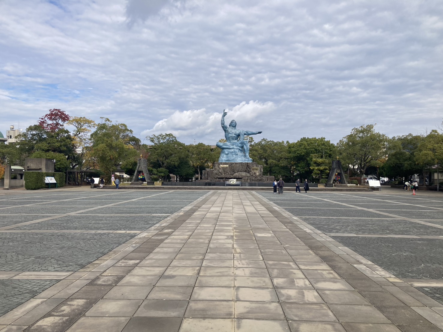 次は長崎駅から北のエリアを目指し、路面電車に沿って進みます。約3kmくらい走って「浦上天主堂」に到着。祝日でなのか、教会の中では牧師さんがお話をしてました。「浦上天主堂」から「平和公園」はすぐです。平和公園に入り「平和の泉」「平和祈念像」「原爆落下中心地」「被災当時の地層」と見学をしました。見学後、来た道を走って長崎駅に戻って行きます。途中「長崎スタジアムシティ」を通って、朝スタートした長崎駅に戻ってきてゴール。約18km、4時間半の楽しいマラニックでした。ゴール後は車に戻って、長崎市内唯一の銭湯に行って汗を流しました。