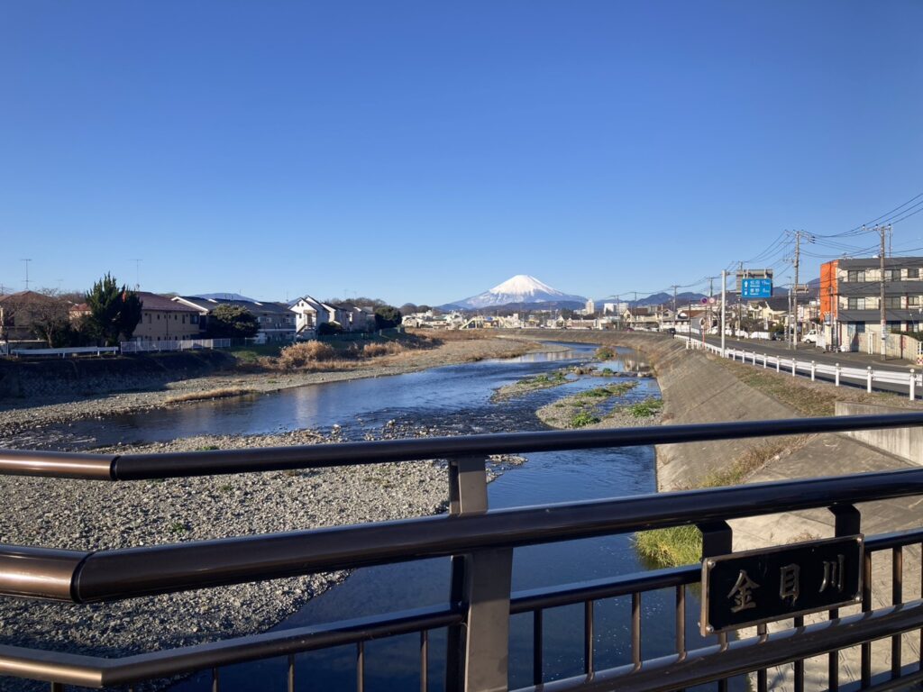気温が低くて寒いですが、よく晴れたお天気でマラニック日和です。平塚駅をスタートして市街地を走っていきますが、お正月だし朝早いし、街は静かです。金目川からは川に沿って走ります。景色が開けて、空気が澄んでいて遠くに富士山がキレイに見えます。そんな景色を眺めながら、川沿いの道をしばらく上流に向かって走ります。コンビニで休憩をして、その先の延命地蔵尊に立ち寄ってお参りをして、先に進みます。