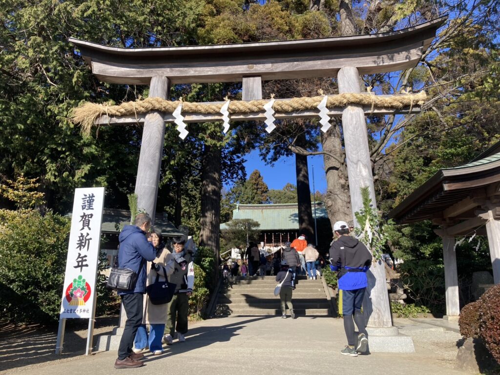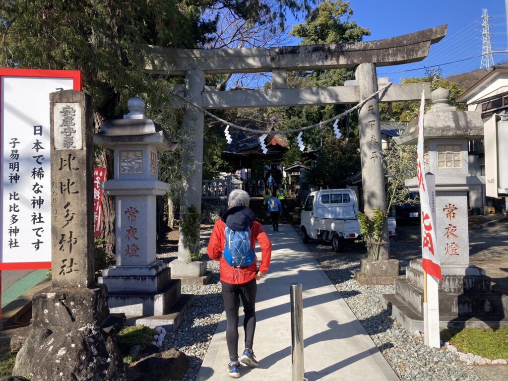 平塚市から伊勢原市に入り、鶴巻温泉を通過して、国道246号を渡ると、その先は田舎ののんびりとして風景が広がります。しばらく走ると相模国の三宮・比々多神社に到着します。お正月なのでお参りの人で賑わってます。私たちもお参りをして、先に進みます。