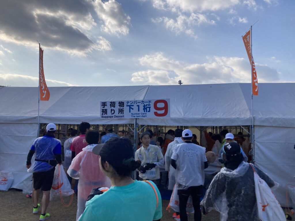 ゴール後も多くのスタッフが笑顔で迎えてくれます。タオルをかけてくれて、完走証をもらい、荷物を取りに行って、着替えて帰ってきました。
