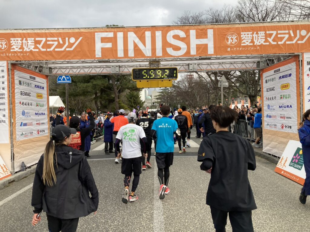愛媛マラソンは初めての参加でしたが、走ってみて人気が高いことに納得する大会でした。今まで多くの大会に参加してますが、地元の人がこれだけ多く携わっている大会はなかなかありません。特に中学生、高校生たちの活躍がすごかったです。機会があれば、また参加したい大会です。