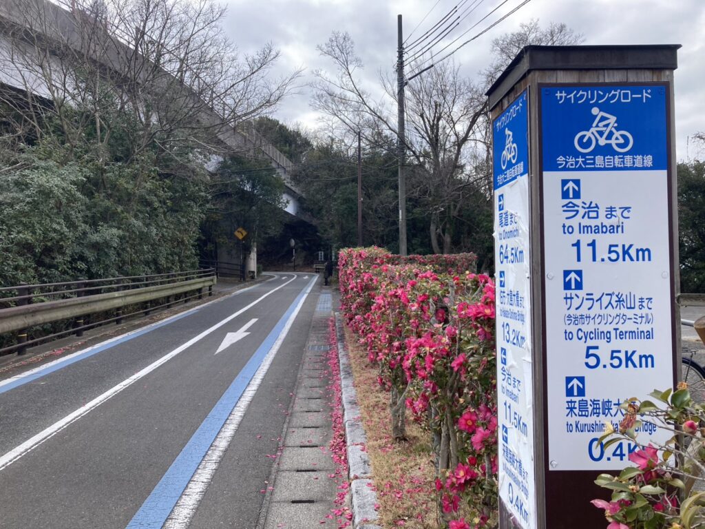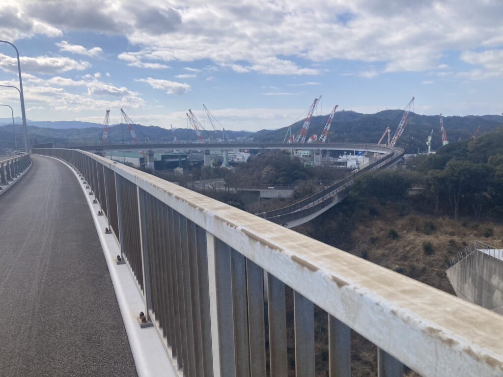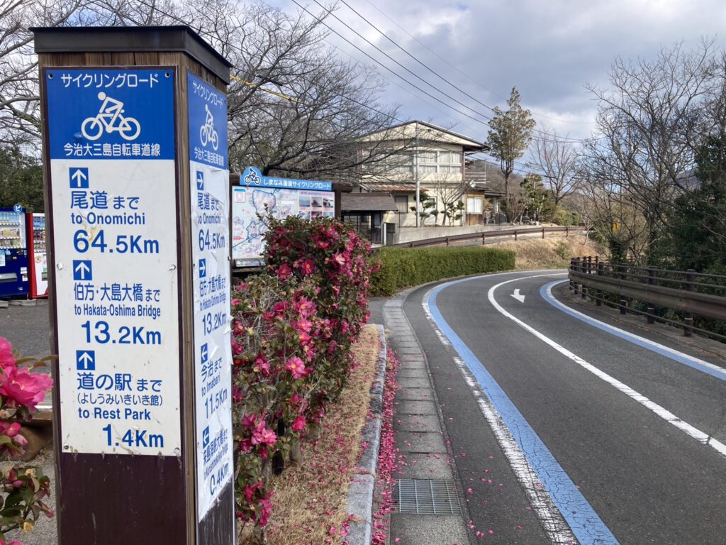 2026年2月3日(火)、瀬戸内海に浮かぶ島々を7つの橋でつなぐ、全長約60kmの「しまなみ海道」のうち、四国側の今治から大島をつなぐ来島海峡大橋を走ってきました。スタートは愛媛県今治市のサンライズ糸山に併設している、今治市サイクルリングターミナルです。駐車場に車を停めて、走る準備をして、サイクリングターミナルをスタート。まずは来島海峡大橋の入口を目指して走ります。